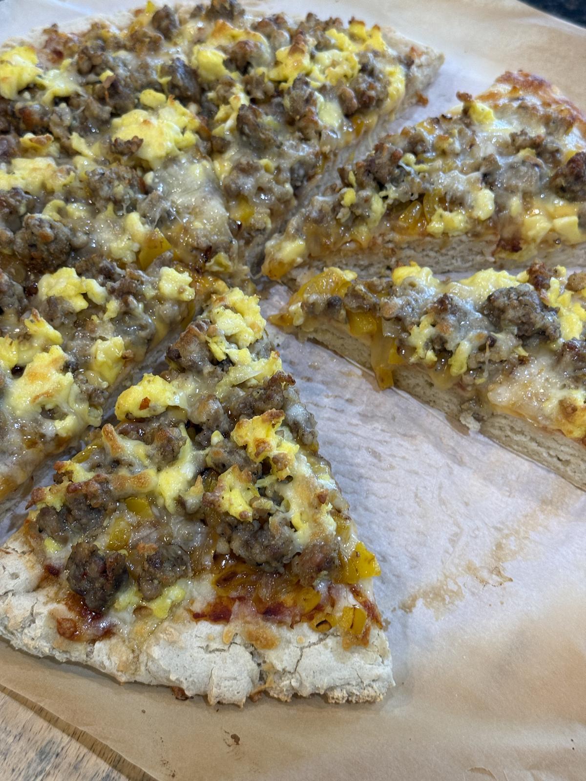 I make the same breakfast pizza as Cheryl does with crescent rolls for crust. It is very good and you can add onions and chopped bell peppers also for enhanced flavor.